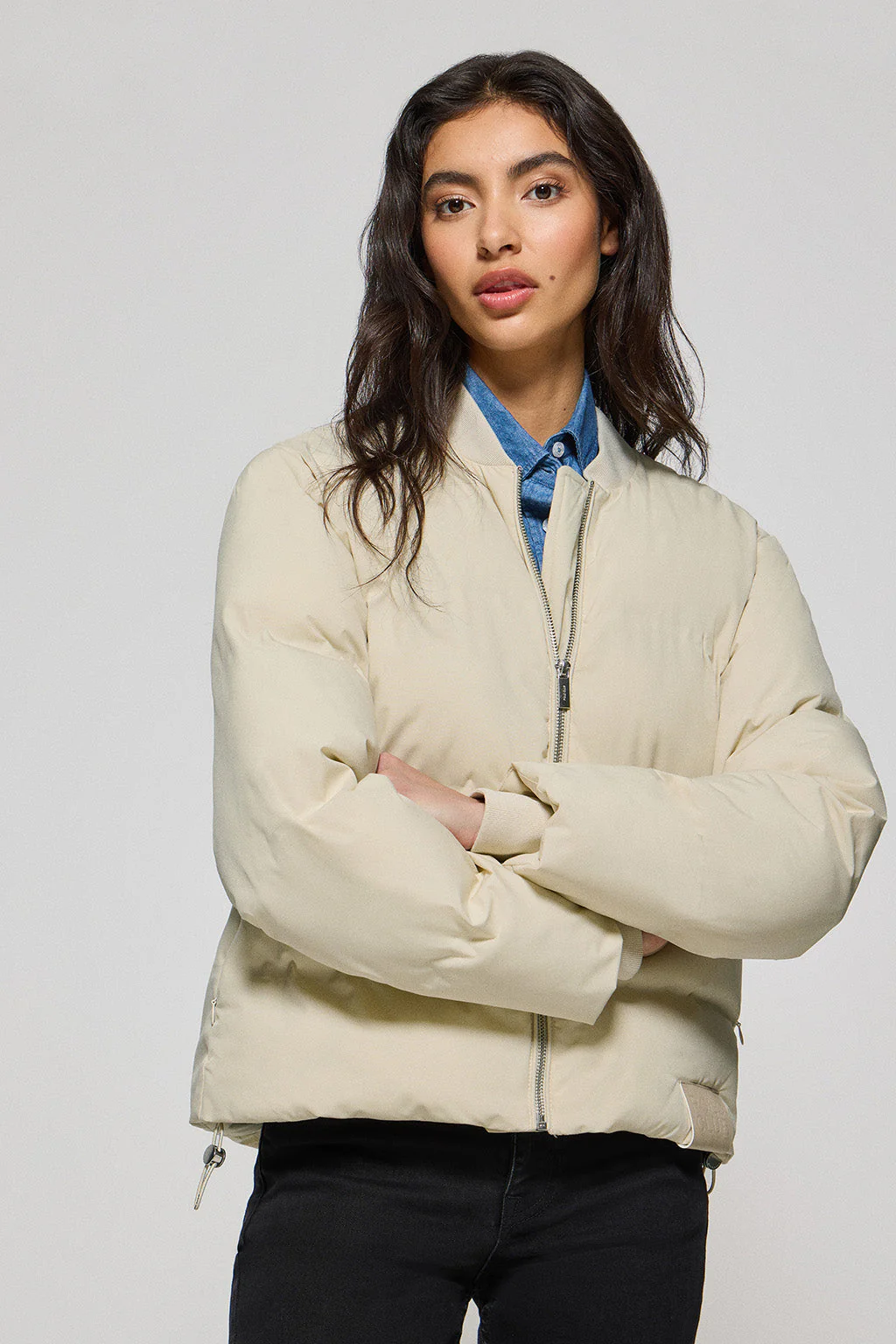Beige puffer bomber Dubai with Polo Club details