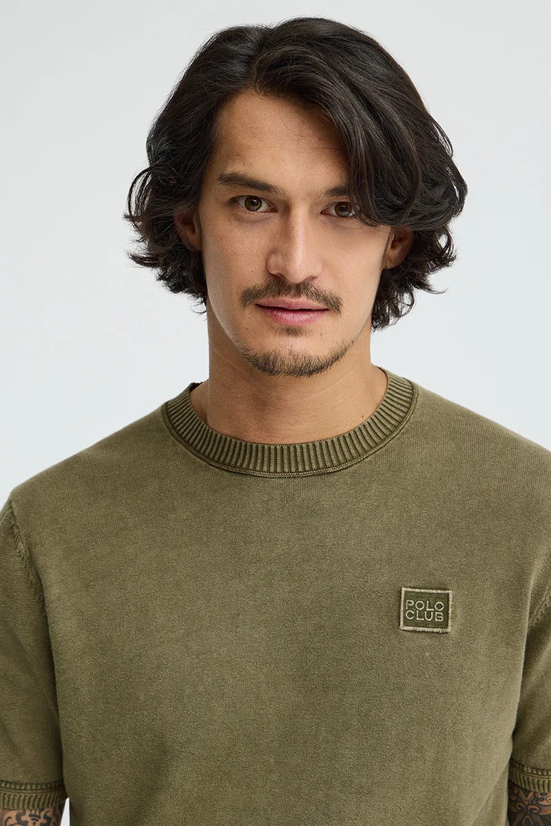 Men's short-sleeve jumper with round neck and slim fit. With our Polo Club patch and made from 100% garment-dyed cotton that gives it a slightly worn-out finish.