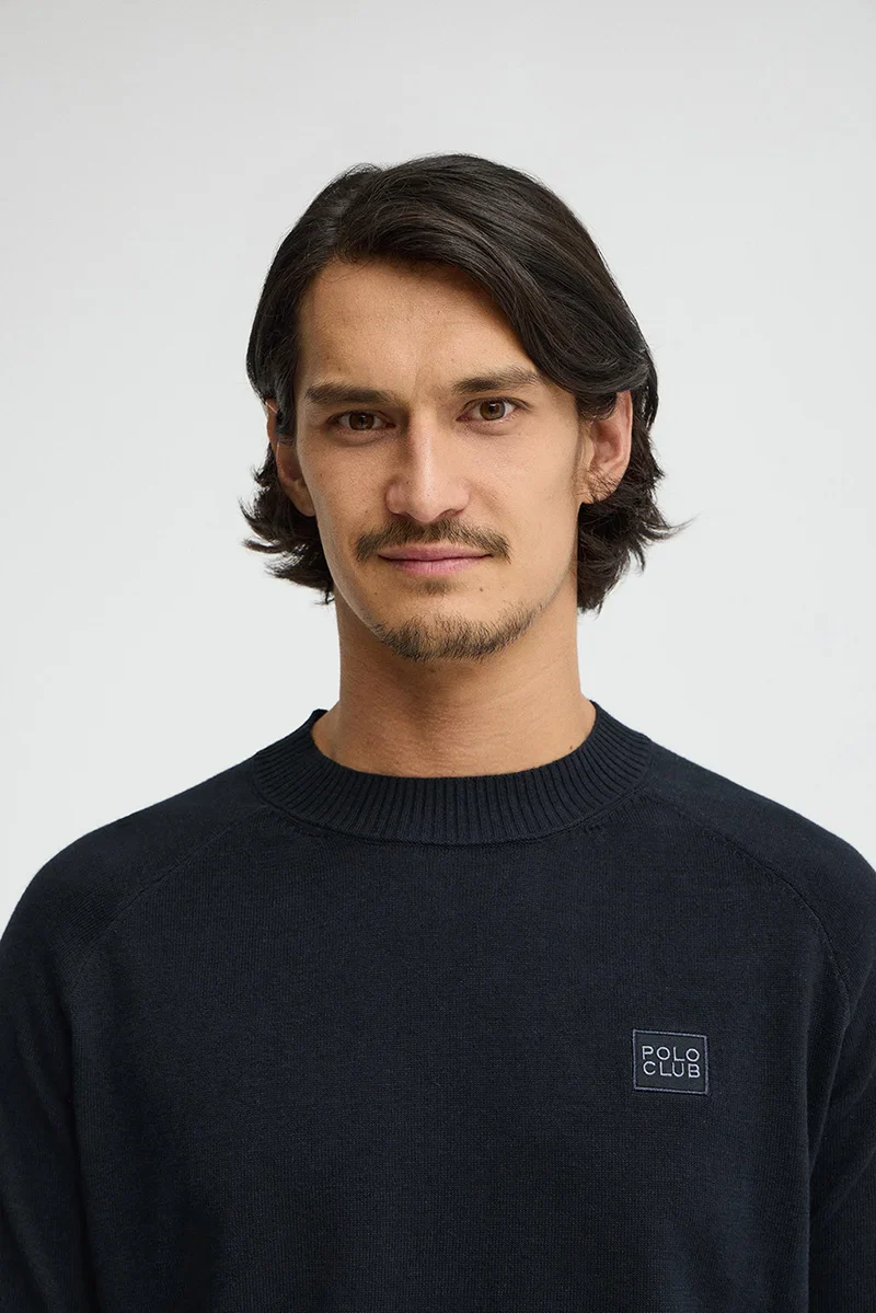 Navy-blue cotton-linen jumper with raglan sleeves and Polo Club logo