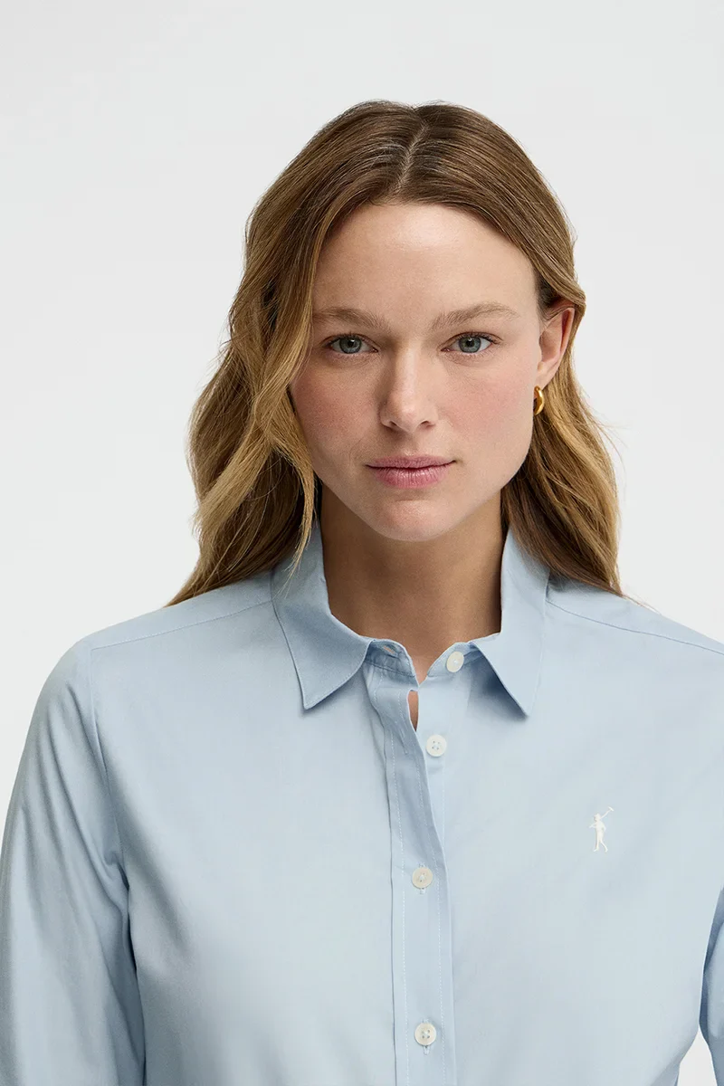 Light-blue slim-fit poplin shirt with Rigby Go embroidery