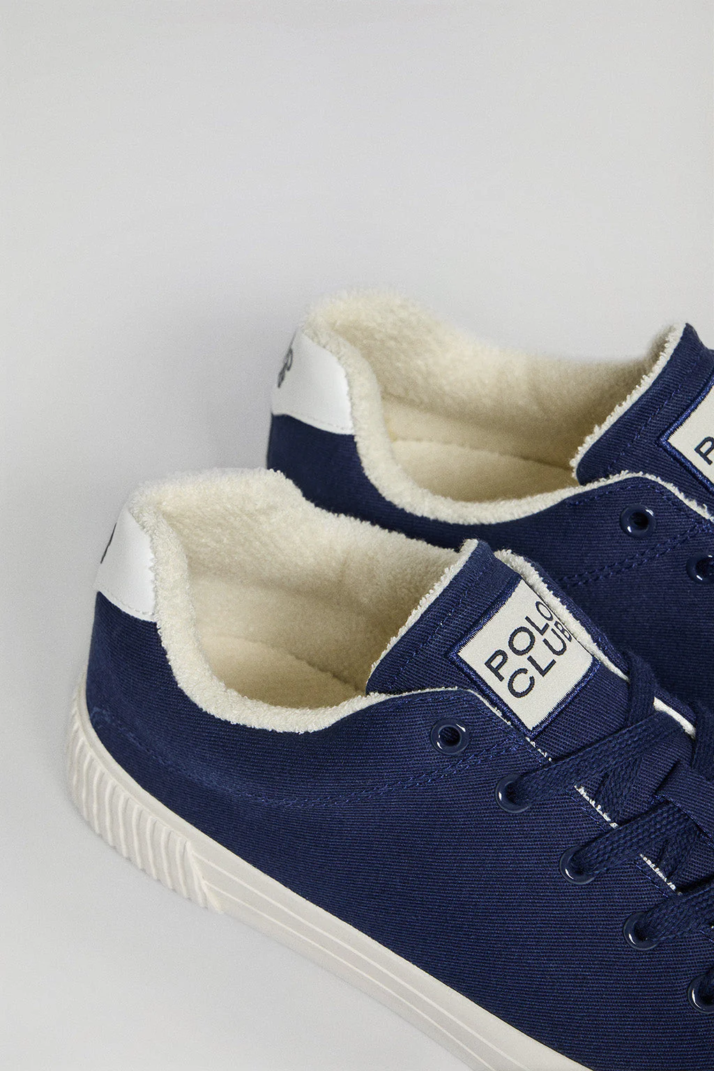 Classic canvas men trainers. Polo Club rubber logo on the faux-leather heel counter. Overlocked branded tonal label on the tongue. Lace closure with branded finish. Towel lining. Vulcanised rubber sole.