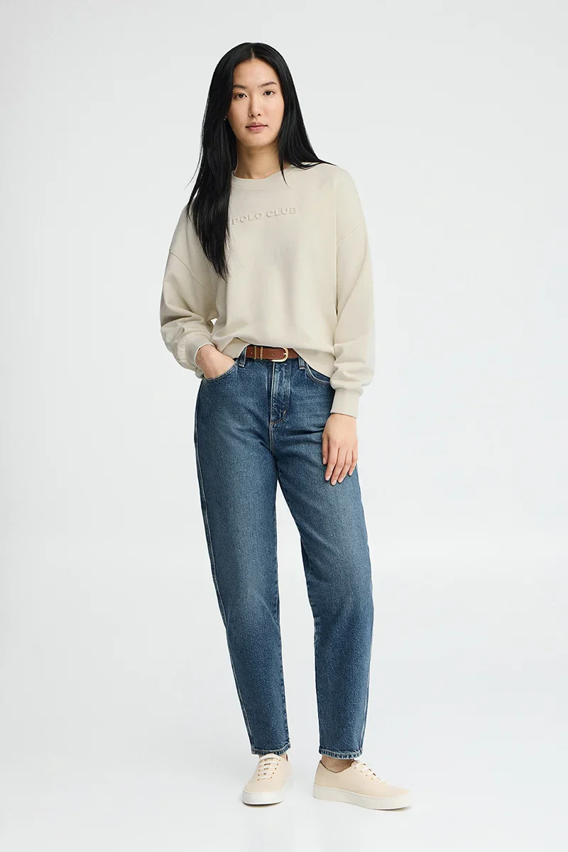 Women's loose-fit sweatshirt with round neck and crossover detailing. Made from cotton, standing out with it Polo Club raised logo. Comfy and with a laid-back vibe.