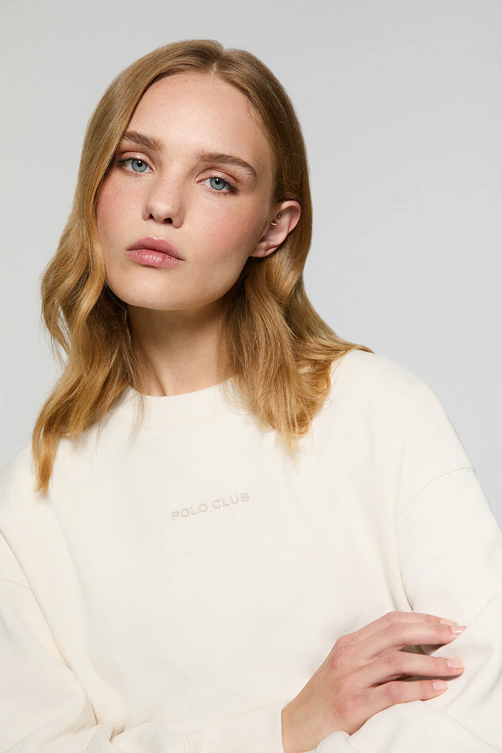 The Sendy sweatshirt for women, with a round neck and oversize fit, is designed to create a relaxed and stylish look. The ribbed cuffs and hem offer a comfy fit. Its Peach Effect finish gives it a pleasant to the touch feel, while its plush cotton lining gives it warmth. The Minimal Polo Club rubberised logo on the chest completes the piece with a distinctive touch.