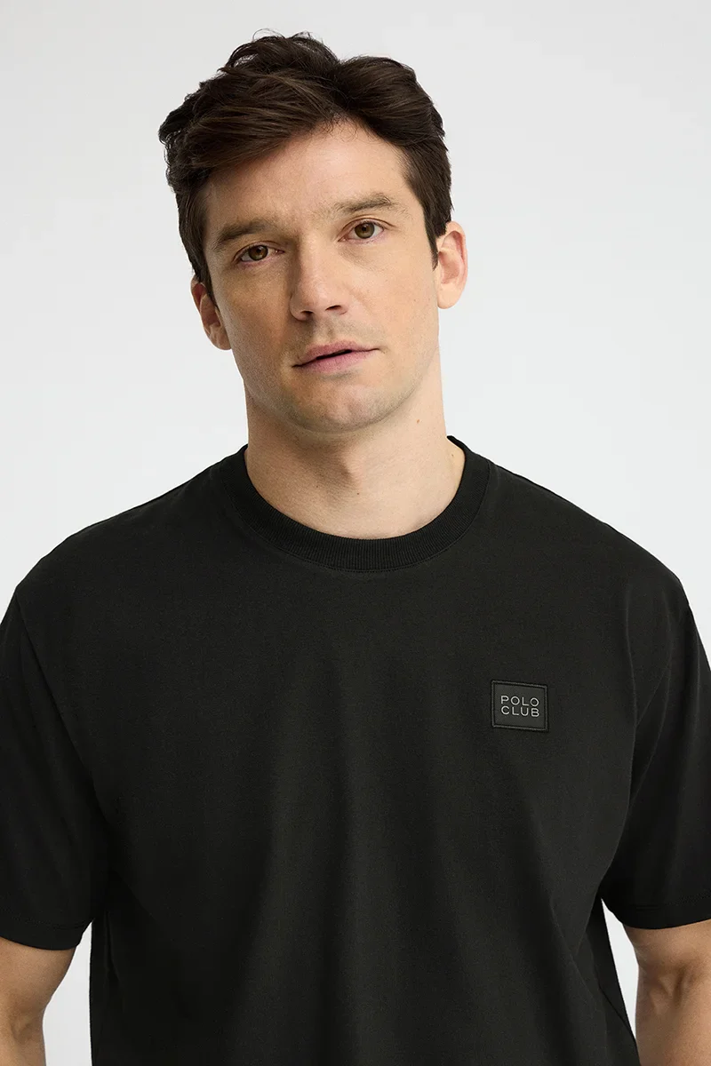 Black loose-fit T-shirt with Polo Club patch